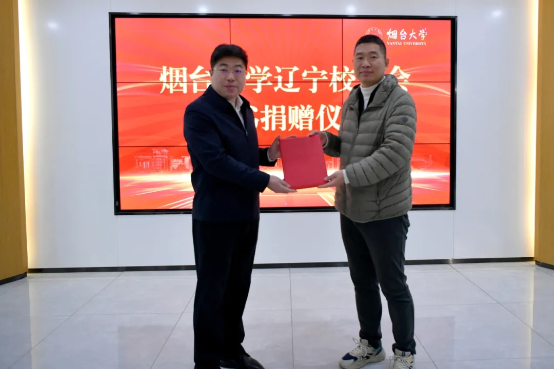 在烟台大学辽宁校友会图书捐赠仪式上,数学与信息科学学院2000级校友张光辉代表辽宁校友会将募集的2.7万元资金捐赠给学校图书馆用于购买图书。